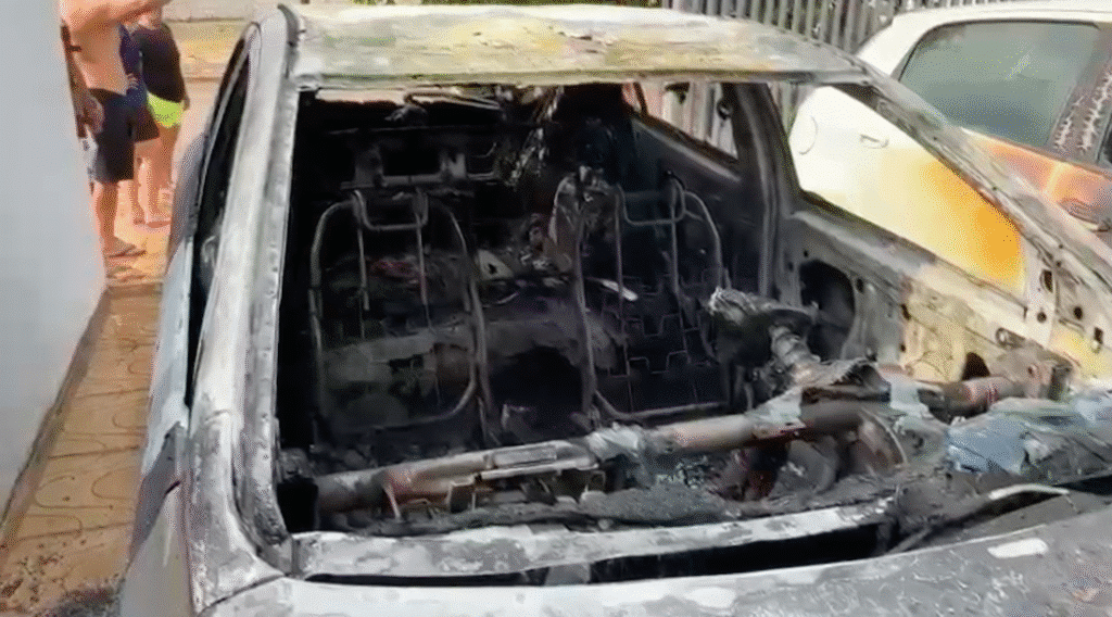 Em meio a lágrimas e muito emocionada, a moradora explicou que no momento do incidente estava com os filhos no interior da casa quando começou a sentir cheiro de borracha queimada. “Eu olhei, porque os vizinhos limparam o lote ali, eu falei assim, ‘estão colocando fogo?’ Olhei, não era, a hora que eu bati o olho no carro, o fogo estava saindo do volante, aí eu já comecei a gritar, pedir socorro, os vizinhos vieram e ajudaram e conseguiram controlar o fogo. Foi muito desesperador, muito, gente, é muito desesperador.”