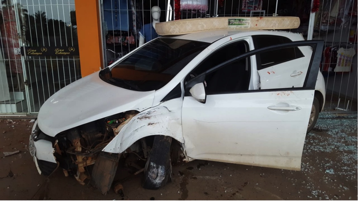 O Hyundai HB20 branco atingiu a frente de uma loja de roupas, localizada na avenida Tancredo Neves, na região central, hoje de madruga. Duas pessoas que estavam no veículo e não tiveram as identidades divulgadas, ficaram feridas e foram socorridas pelo Corpo Bombeiros. Ainda não há informações sobre o atual estado de saúde.