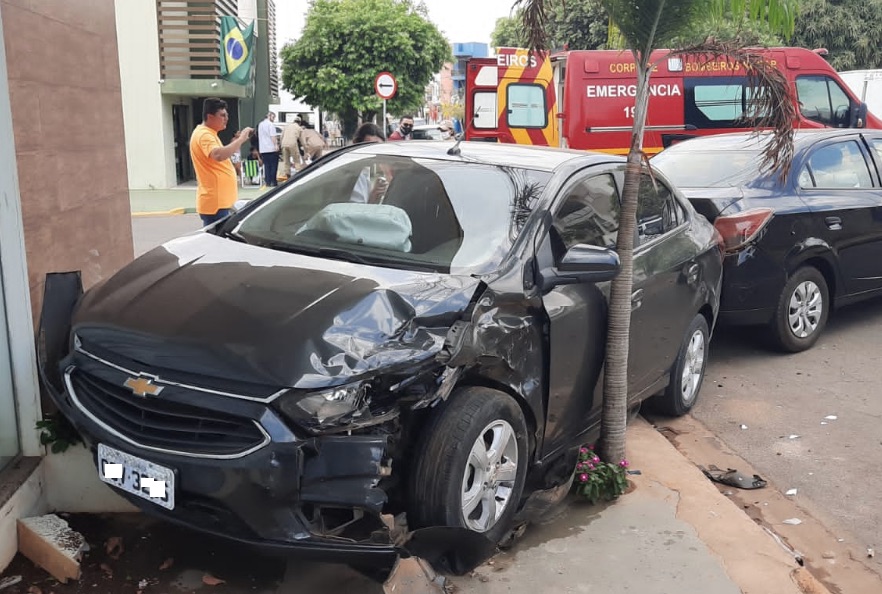 Um dos veículos chegou a subir a calçada e atingir a parede de uma empresa. Os dois carros tiveram diversos danos. A responsabilidade do acidente será apontada pela Polícia Civil.