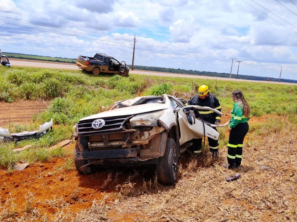 O acidente com uma caminhonete Hilux SW4 foi hoje, no final da manhã, na MT-449 em Lucas do Rio Verde, a cerca de 5 km da praça de pedágio. Duas mulheres e um homem foram arremessados para fora do veículo. Jaine Alves dos Santos, de 33 anos, e Danyelle Azevedo da Cruz, 30 anos, não resistiram e morreram. O homem, de 32 anos, que conduzia o veículo, foi hospitalizado com traumatismo craniano e seu estado de saúde não foi informado.