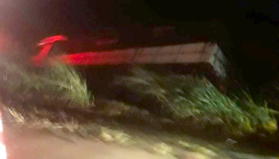 Em Sorriso, esta noite, um VW Gol branco saiu da pista e o condutor alega que foi fechado por uma carreta. Ele não se feriu.