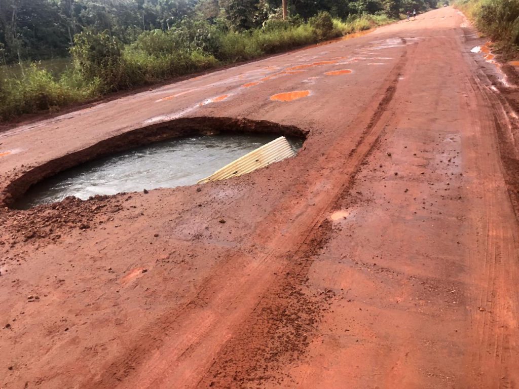 Secretaria deve começar hoje arrumar estrada em Sinop onde cratera se formou após rio transbordar