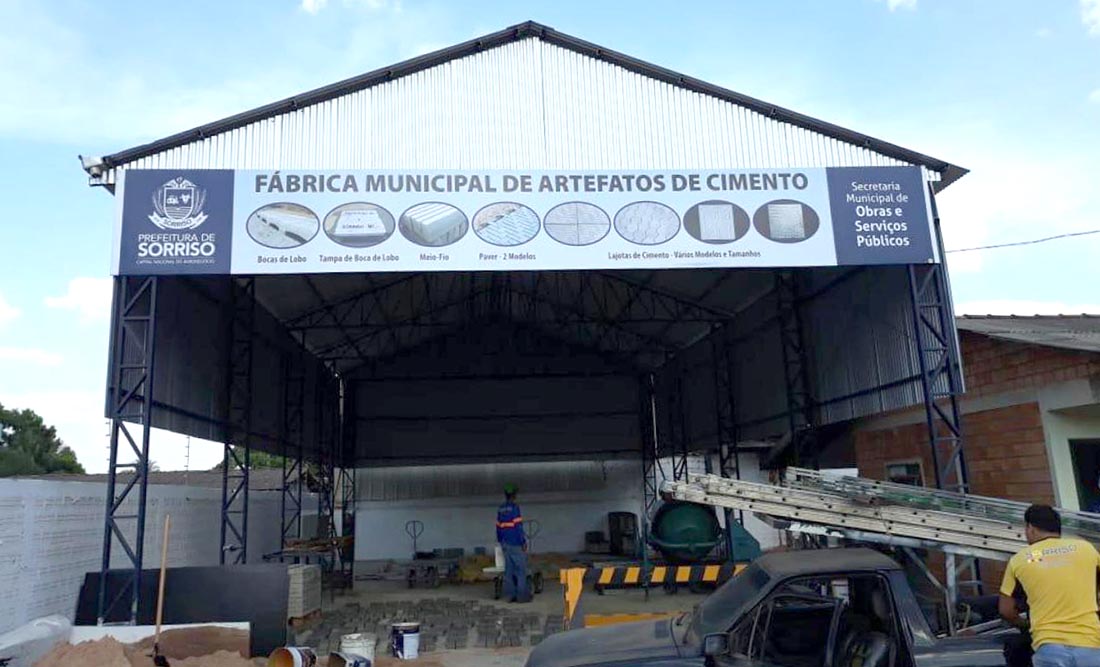 A fábrica municipal de artefatos de cimento que funciona na secretaria de Obras será inaugurada nesta 3ª feira mas já iniciou a produção de paver, meio-fio, calçadas de piso tátil, bocas de lobo, guias e também tampas de bocas de lobo.
