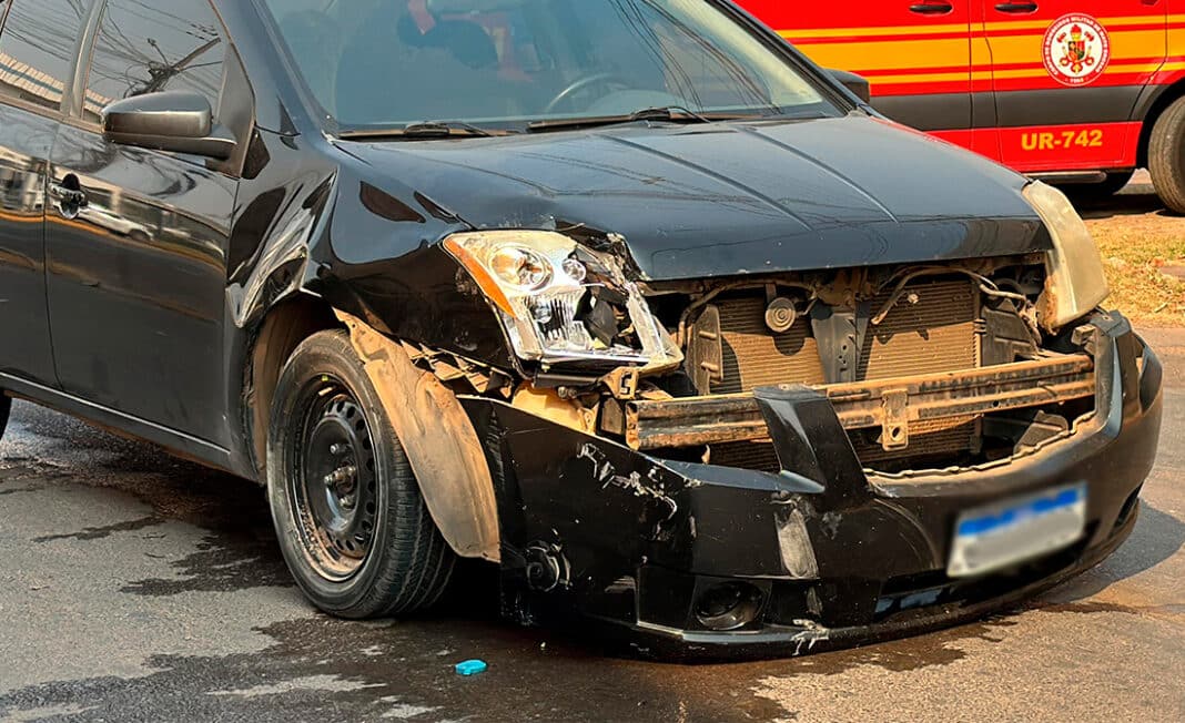 Uma Honda CG Fan e Nissan Sentra, ambos pretos, se envolveram em acidente de trânsito, esta manhã, no cruzamento da avenida Los Angeles com rua Colúmbia, no bairro Jardim Califórnia. O condutor da moto recebeu os primeiros atendimentos dos bombeiros.