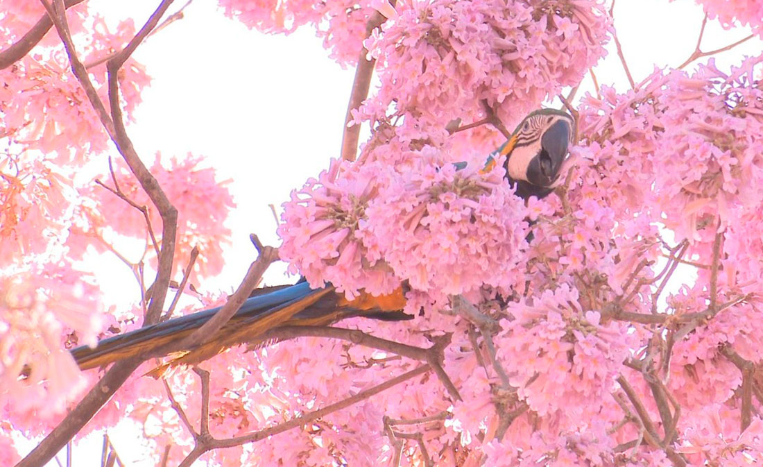 A floração rosa dos ipês plantados nas avenidas Curitiba, Mário Raiter, no viaduto da rua Ademar Raiter e outros locais, vem encantando os moradores do Sorriso. Os pontos se tornaram lugares para belos registros e até mesmo para alimentação de araras-canindés, que aproveitam as flores.