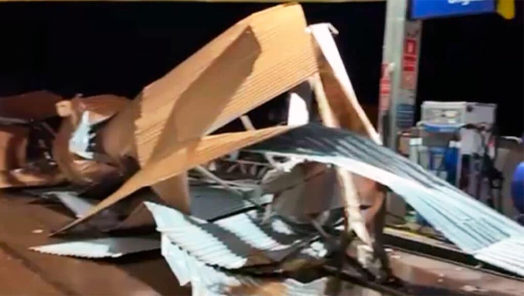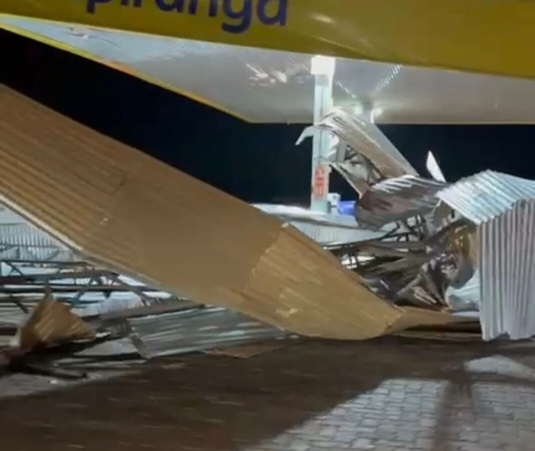 Imagens gravadas por moradores registraram a destruição na cidade, como um posto de combustíveis, que parte do teto cedeu, além de diversos postes caídos em ruas e avenidas da cidade.