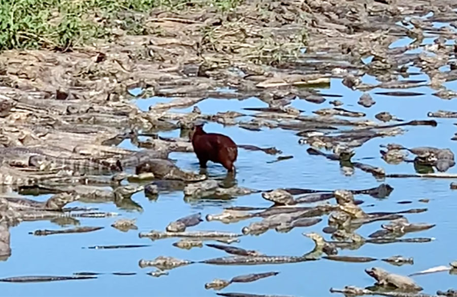 “Estava em Poconé, visitei uma amiga numa pousada, lá tem várias pontes e nesse lago havia muitos jacarés. Essa capivara estava num canto de repente entrou na água nadando, quando notei já estava saindo do outro lado de boa. Foi uma cena, caramba que coisa louca”, disse Campos, ao Só Notícias, explicando ainda que é algo normal de se ver na região.