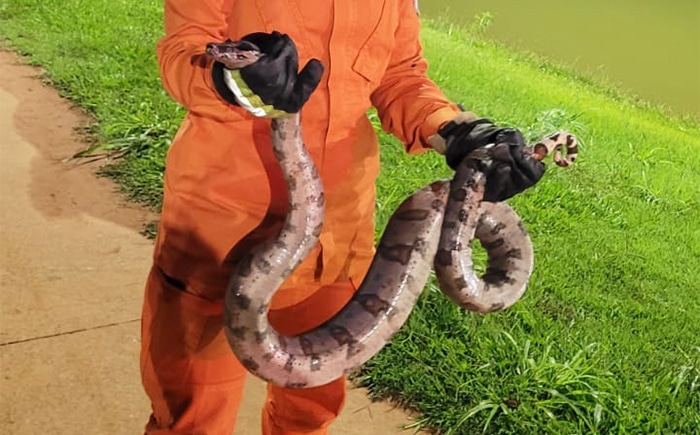 Já a serpente foi flagrada numa área de passeio público e, visando evitar possíveis incidentes com pedestres, os bombeiros atuaram na contenção. Durante a avaliação primária, constataram que estava saudável e sem ferimentos aparentes. Com isso, a encaminharam até uma região de mata ciliar (próxima a córregos) para a soltura.