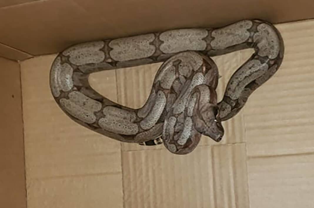 Colaboradores avistaram a jiboia-constritora (Boa constrictor) nas dependências de uma oficina mecânica, ontem à tarde, situada às margens da rodovia estadual (MT-208) em Alta Floresta. O Corpo de Bombeiros confirmou que não houve registro de ataques ocasionadas pelo contato com o animal.