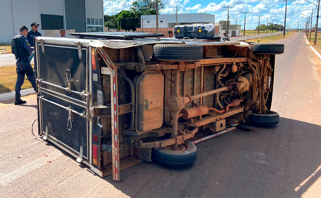 Furgão tomba após colisão com carro em Sorriso e homem fica ferido