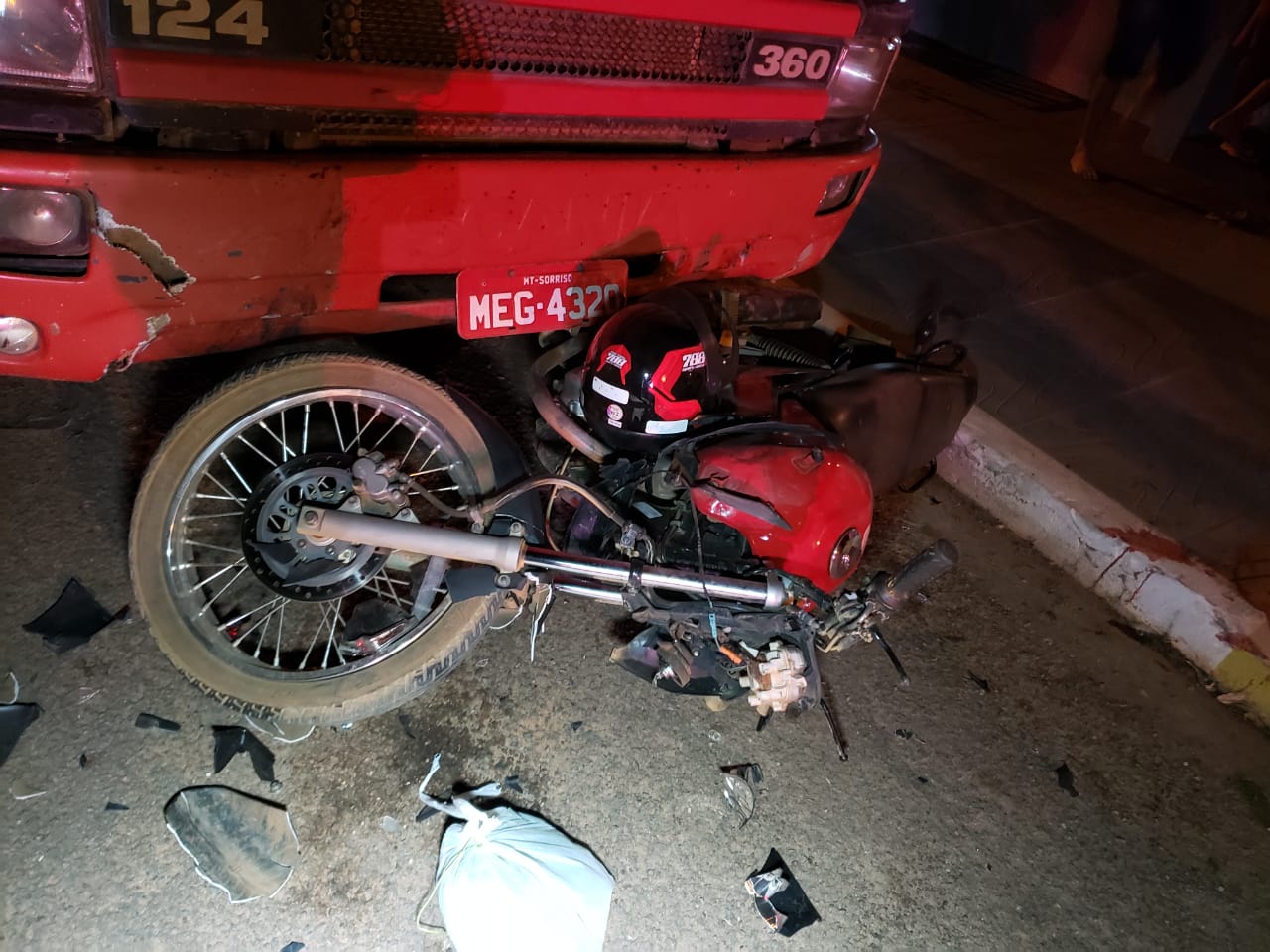 O acidente ocorreu, ontem à noite, na rua Eça de Queiroz, no bairro Taiamã envolvendo Honda Titan e uma Scania 360 vermelha. De acordo com informações do Corpo de Bombeiros, o condutor da moto foi socorrido em estado grave ao Hospital Regional.
