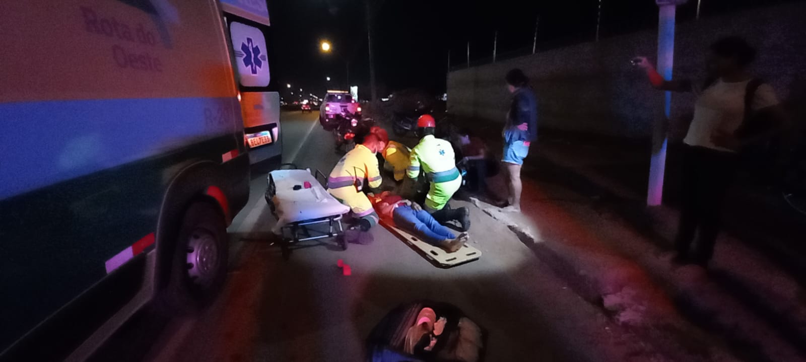 Um homem de 26 anos e uma mulher de 22 ficaram feridos, há pouco, em um acidente envolvendo duas motocicletas. A colisão ocorreu na esquina da rua João Pedro Moreira de Carvalho com a Jesuítas, no bairro Jardim América.