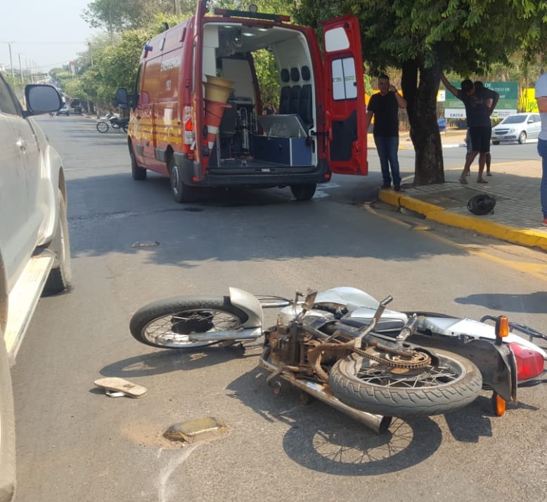 O acidente envolvendo uma motocicleta Honda Titan prata e uma Toyota Hilux, da mesma cor, foi registrado, esta manhã, na avenida Tancredo Neves, no centro. Duas pessoas que estavam no moto ficaram feridas.
