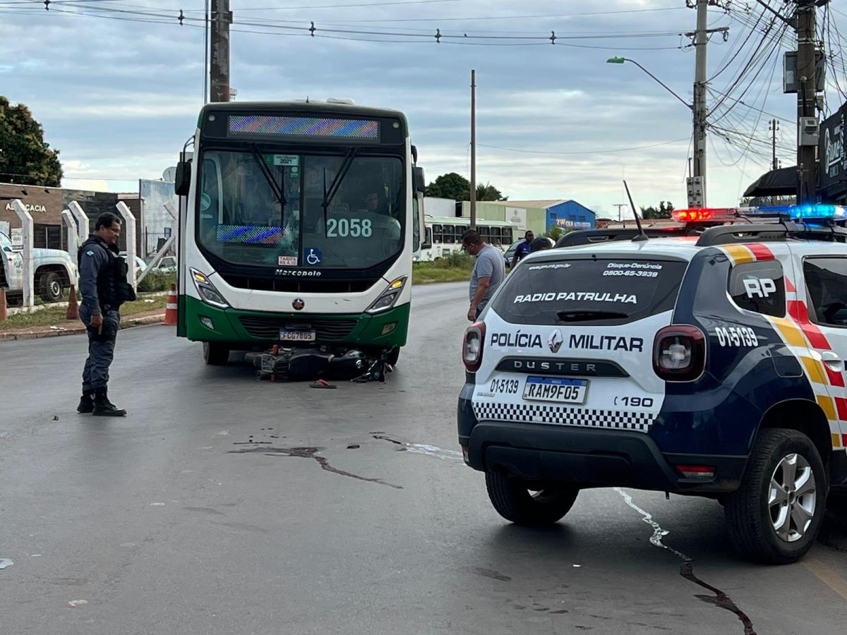 Um homem morreu na hora após bater a moto que conduzia de frente com um ônibus no cruzamento da travessa São Vicente com a Avenida dos Trabalhadores na entrada do bairro Planalto, em Cuiabá, na tarde desta quinta-feira. A motocicleta ficou embaixo do ônibus.