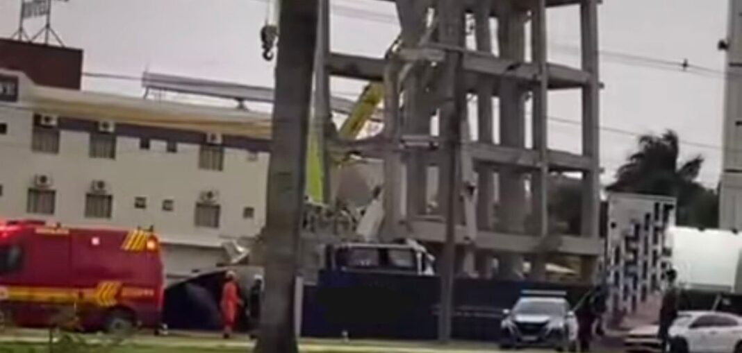 A estrutura de um hotel em construção desabou, esta tarde, na avenida Universitária, no Parque das Emas. Equipes do Corpo de Bombeiros realizam atendimento da ocorrência, na qual não houve vítimas.