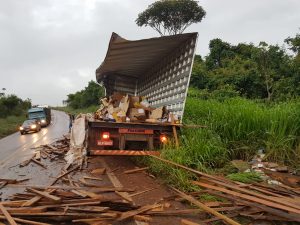 Na colisão parte da carroceria do caminhão dos correios foi arrancada, e tanto a carga de madeira como as encomendas ficaram espalhadas pela rodovia.