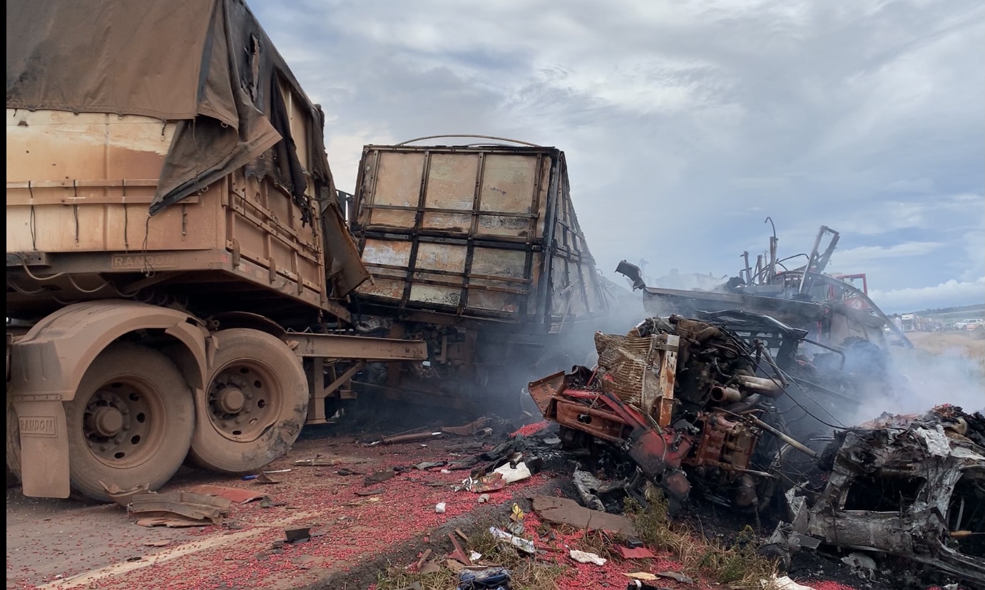 Com o impacto, a carreta que transportava sementes pegou fogo, ficou completamente destruída e o motorista foi carbonizado. A outra carreta também ficou na rodovia, o cavalo mecânico Scania se desprendeu, tombou e parou fora da pista. O Fiat Toro teve danos na lateral esquerda saiu da rodovia e o motorista não teve ferimentos. A causa começa a ser apurada e uma das hipóteses seria invasão de pista. A Scania e o Toro trafegavam sentido Sinop e a carreta que pegou fogo andava em direção a Itaúba. Uma parte da carga de sementes foi destruída pelo fogo e outra se esparramou na pista. Um vagão da Scania ficou parcialmente destruído pelas chamas.