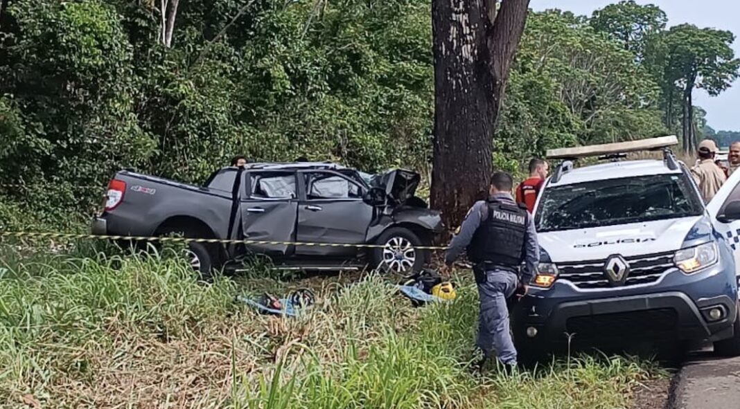 Os dois estavam na caminhonete Ford Ranger cinza (placas Brasil) que saiu da pista e colidiu violentamente em uma árvore. Os bombeiros constataram que ambos faleceram no local. A Ranger ficou totalmente destruída.