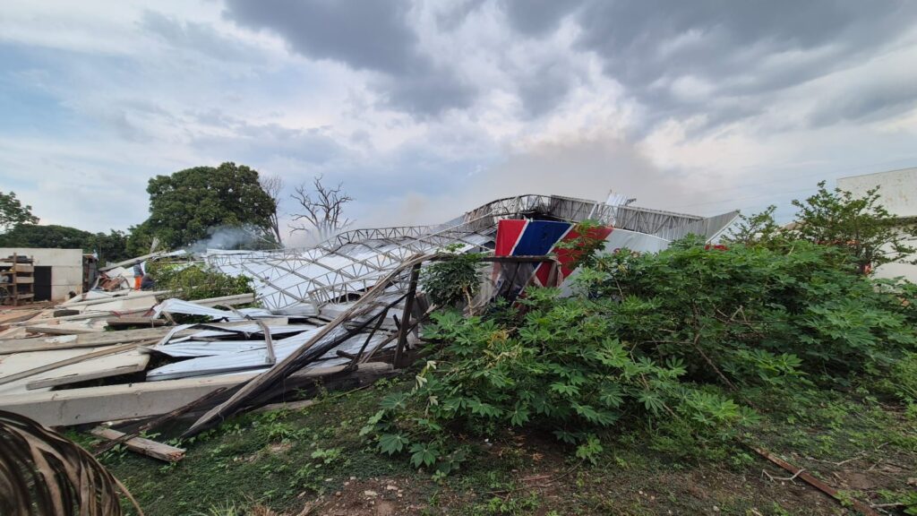 Ainda segundo o militar, as equipes seguem monitorando o local. “Inicialmente veio nosso caminhão (auto-bomba tanque) da BR-163, depois pegamos outros dois caminhões reservas, também solicitamos caminhão-pipa da prefeitura que também está se deslocando para cá, para que possamos fazer o rescaldo aqui, e zerar qualquer tipo de reignição (do fogo) e diminuir o incômodo da fumaça na região.” “O trabalho continua até termos a certeza que está tudo seguro para as pessoas, que não tenha nenhum tipo de risco, em relação ao fogo. A estrutura ainda apresenta risco de queda, a gente teve dificuldade de adentrar, porque a estrutura está apoiada numa madeira queimada.”