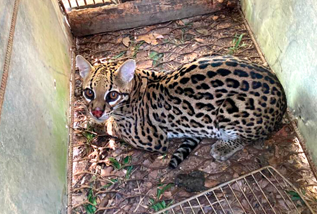 De acordo com o dono da propriedade, a jaguatirica vinha atacando sua criação de galinhas. Para evitar mais prejuízos e resguardar a segurança do mamífero, instalou uma armadilha e conseguiu realizar sua captura.
