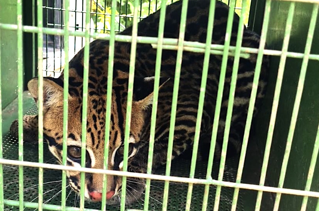 O macho, jovem e pesando 13,2 kg, foi resgatado, pelos bombeiros, com fratura em ramo mandibular esquerdo. A diretoria de Unidade Desconcentrada da Sema em Sinop e a equipe de Fauna levou o animal a universidade, onde veterinários fizeram exames, iniciaram tratamento clínico e, há duas semanas, teve nova tomografia de crânio, sendo constatado que a fratura estava cicatrizada. Os veterinários fizeram nova cirurgia para retirada de placa e cerclagem e constataram que a jaguatirica estava apta para soltura imediata, verificando que se encontrava com comportamento agressivo frente a humanos e com habilidade de caça preservada sem prejuízo de locomoção.