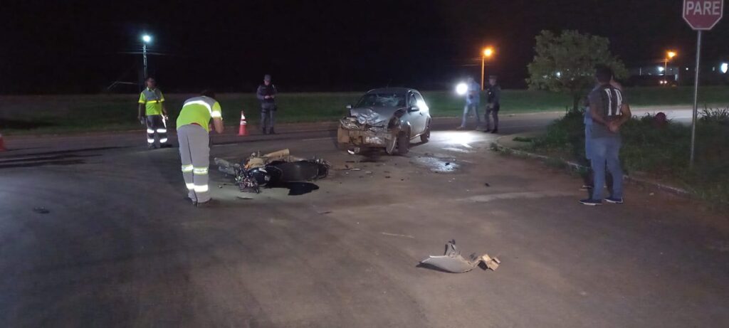 Um motociclista de 18 anos ficou ferido, esta noite, após se envolver em uma colisão com um carro, no bairro Cidade Alta, região do Alto da Glória. A vítima pilotava uma Honda CG Titan preta, que colidiu com um Ford Ka prata.