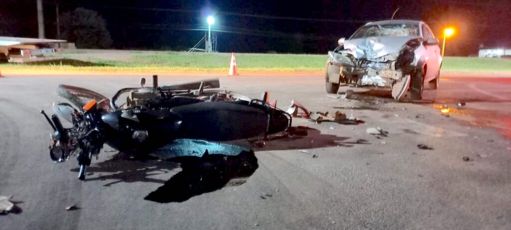 Com o impacto, o motociclista foi arremessado a cerca de 30 metros do local da colisão. Ele foi socorrido com cortes no braço e suspeita de fratura no fêmur direito. Uma equipe da concessionária que administra a BR-163 encaminhou o jovem para o hospital regional.