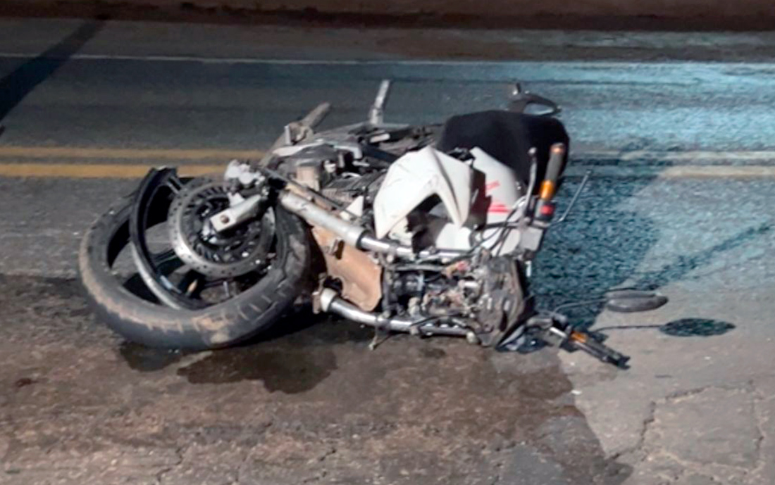 A motocicleta ficou com a parte frontal destruída com o impacto. Delegacia de Delitos de Trânsito (Deletran) investiga o acidente.