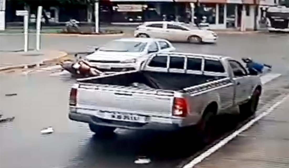 Câmeras de segurança registraram o momento em que o motorista tenta cruzar a avenida atinge a motociclista. Eles devem ser repassadas aos policiais para ajudar apontar as responsabilidades pelo acidente.