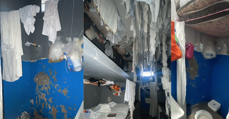 Conforme o relatório, o bebedouro da cela fornece água quente e há apenas um banheiro, com pia e torneira quebradas. “Os entupimentos, que causam o retorno de dejetos, agravam ainda mais a situação, comprometendo a higiene e o bem-estar dos custodiados”, afirma outro trecho. Conforme o documento, reeducandos são forçados a dormir no chão de concreto, sem colchões. “Essa realidade escancarada reflete a total omissão do poder público, que não apenas falha em assegurar os direitos básicos dos detentos, mas também expõe os apenados a uma situação de humilhação e sofrimento desumano”, diz o documento.