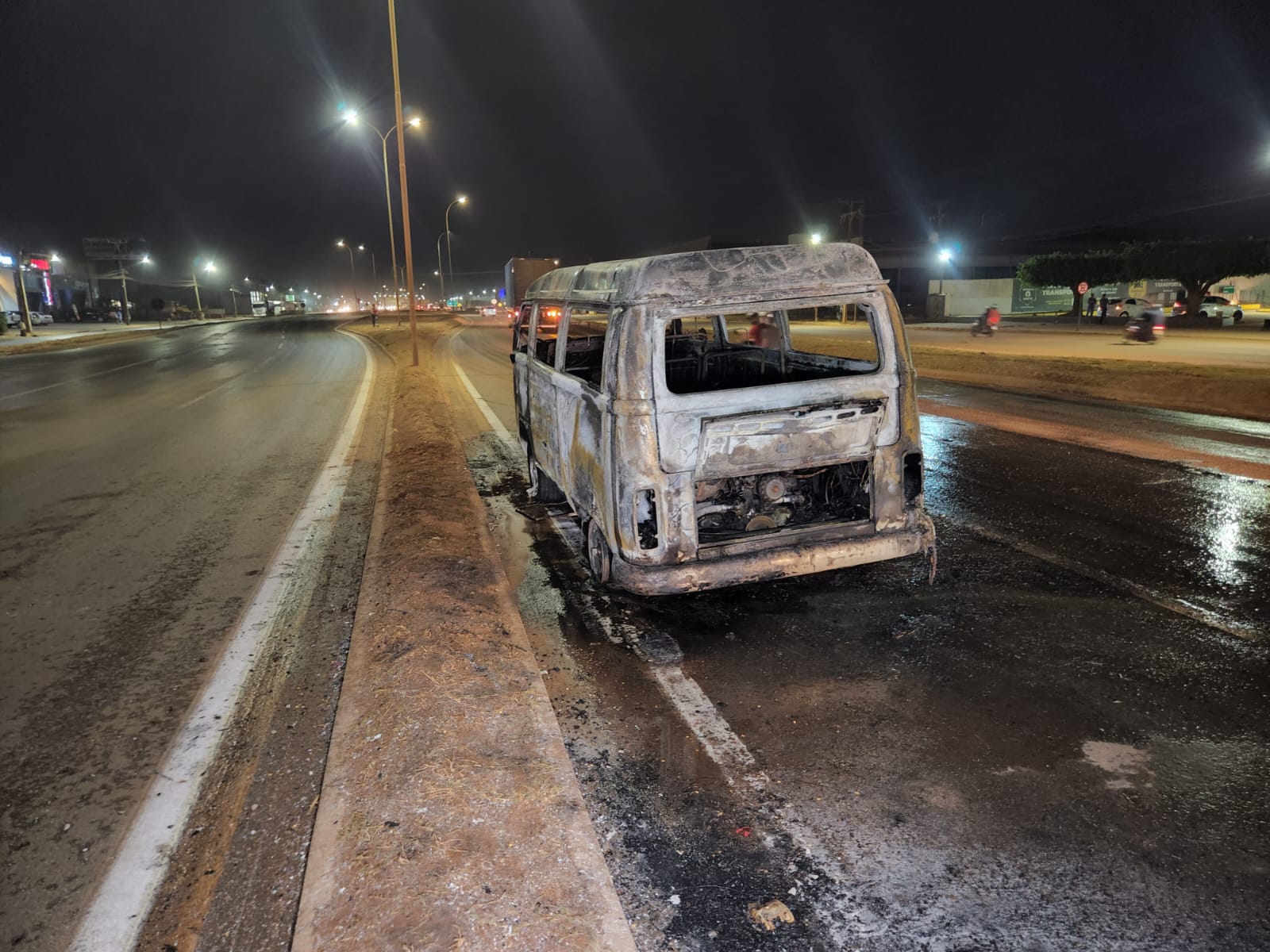 Um veículo VW Kombi acabou pegando fogo, há pouco, na BR-163, no quilômetro 739 em Sorriso. O incêndio começou nas proximidades da rodoviária.