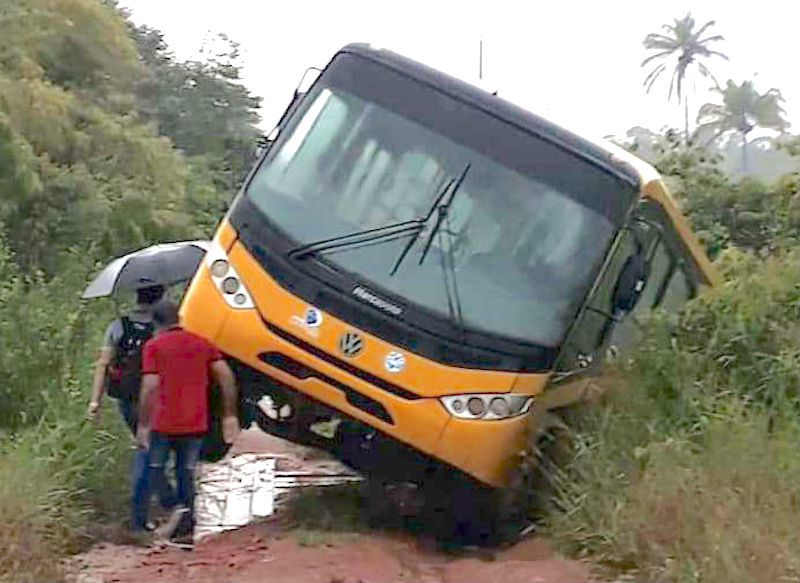 Ainda de acordo com Almeida, uma equipe da secretaria já foi encaminhada ao local para fazer a retirada do ônibus e fazer os reparos necessários.