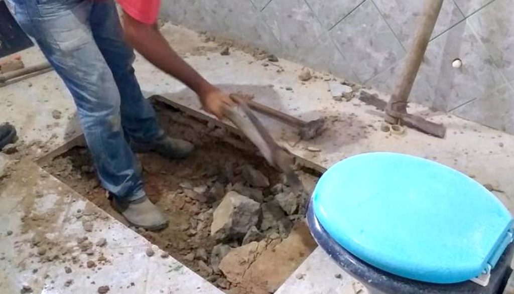 De acordo com Valendorf, após escavarem aproximadamente 65 centímetros do piso do banheiro foi possível encontrar algumas tábuas que, segundo o autor, foi posto ao lado do corpo simulando um caixão. “Como o autor do crime disse ter golpeado a vítima na região do pescoço com o emprego de um “pé-de-cabra” será também analisado se os fragmentos ósseos do maxilar foram produzidos pelos golpes ou em decorrência do processo de decomposição”, afirmou Leandro.