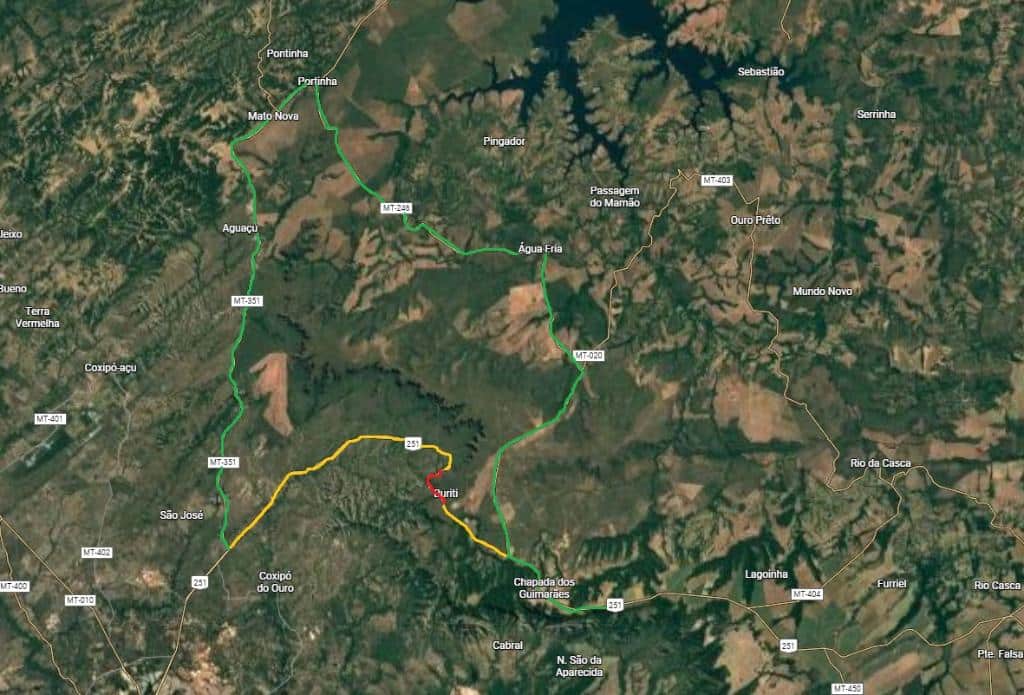 Em relação à MT-251, foi permitido, em caráter excepcional, o trânsito de veículos de até 48 toneladas de PBT entre o KM 69, onde está localizado o Mirante do Centro Geodésico, até o perímetro urbano de Chapada e entre o perímetro urbano da cidade e o entroncamento com a MT-020, que dá acesso ao Distrito da Água Fria.