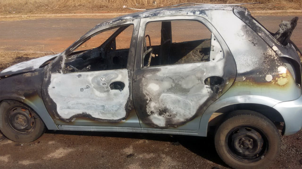 O GM Celta foi completamente destruído após pegar fogo, ontem à noite, na entrada que liga ao bairro Ipê Amarelo. O Corpo de Bombeiros foi acionado, porém, ao chegar no local, o veículo já havia sido incendiado. Os militares realizaram apenas o rescaldo.