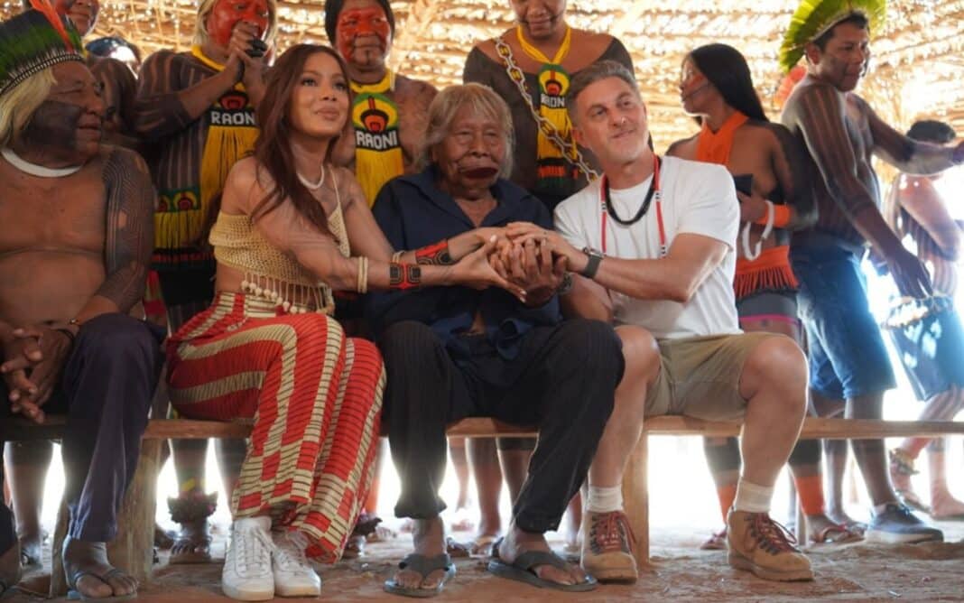 Luciano Huck e Anitta se encontram com cacique Raoni em MT; ‘conversa emocionante’