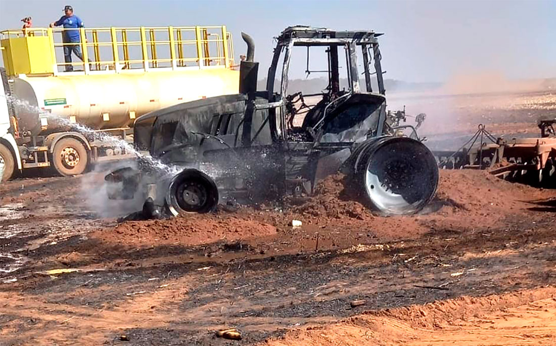 Os dois tratadores com grade acoplada foram completamente destruídos ao serem atingidos pelo fogo numa lavoura de milho em Tapurah (245 quilômetros de Sinop). Algumas pessoas utilizando caminhão pipa ainda tentaram controlar as chamas nos maquinários, mas não conseguiram.