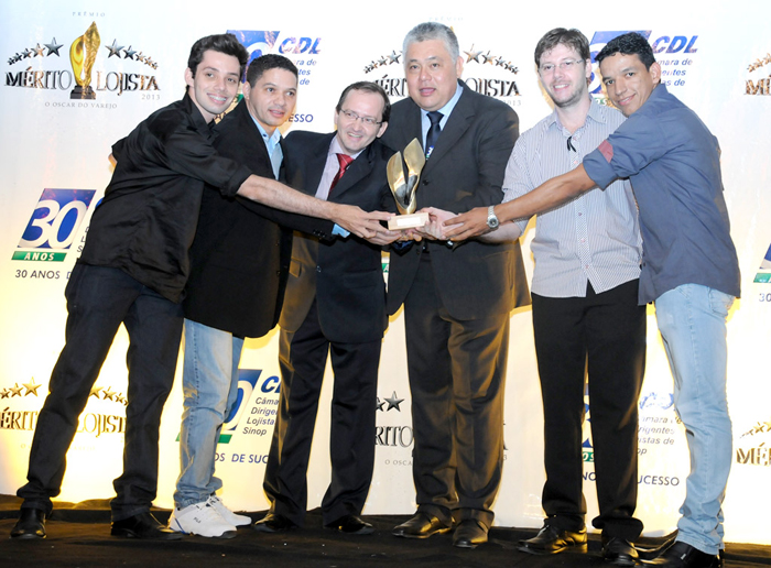 Marcos Azevedo e equipe prêmio Mérito Lojista 2013 (Jessica)