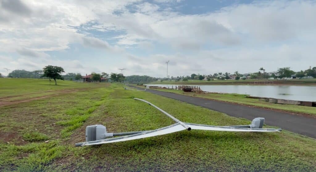 A prefeitura informou, hoje, que equipes de várias secretarias trabalham para consertar os estragos causadas pela forte chuva que caiu, ontem, no fim da tarde e se estendeu até a noite. Entre os danos, aproximadamente 10 postes de energia caíram no complexo turístico dos Lagos, devido à força do vento.
