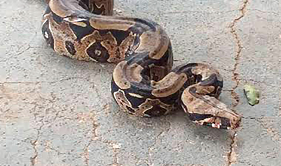Ele descreveu, no boletim de ocorrência, que o réptil havia passado por uma falha na cerca.  Com a ajuda de uma caixa de papelão, ele conseguiu prendê-la até a chegada dos bombeiros.