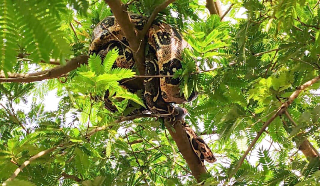 Uma jiboia-constritora (Boa constrictor) com cerca de 2 metros foi capturada pelo Corpo de Bombeiros, ontem à tarde, numa área pública no bairro Jardim Universitário, em Alta Floresta. Não houve registro de ataques por parte do animal. Terceiros que frequentavam o Posto de Saúde da Família (PSF) local deparam-se com o animal em uma árvore e acionaram as autoridades.