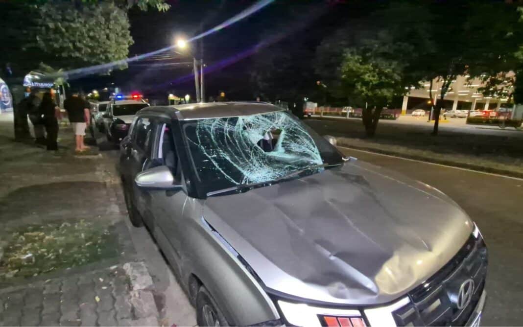Com o impacto, o ciclista foi arremessado contra o para-brisa do carro, que ficou bastante danificado. A bicicleta ficou com o pneu dianteiro retorcido.