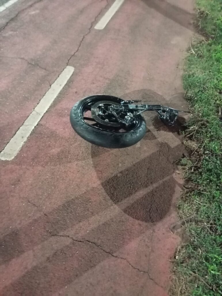Com o impacto, a moto se chocou contra uma árvore e se “despedaçou” em várias partes sobre a pista de caminhada da avenida. A caminhonete sofreu danos na lateral direita.