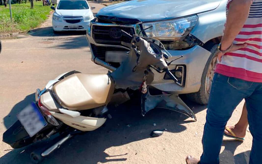 O acidente de trânsito entre uma Honda Biz Branca e Toyota Hilux prata ocorreu, ontem à tarde, na avenida do bairro Setor D, em Alta Floresta. A condutora da moto, de 29 anos, recebeu os primeiros socorros do Corpo de Bombeiros e foi encaminhada ao Hospital Regional Albert Sabin.
