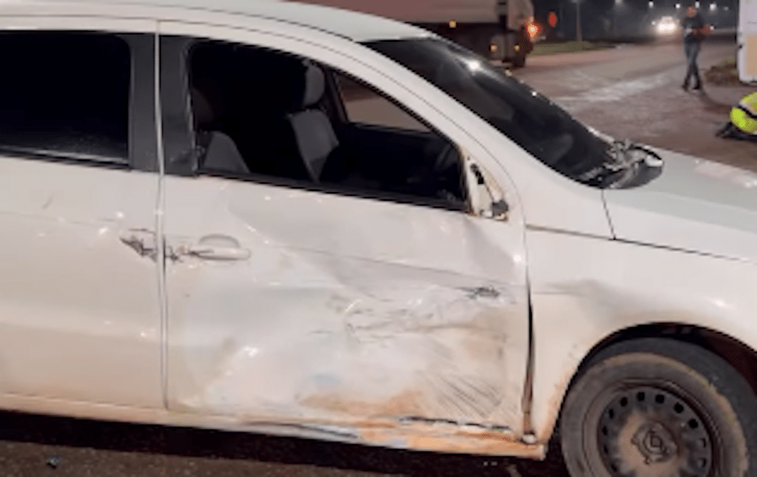 Na 163 em Sorriso, esta manhã, uma mulher morreu em acidente com moto e carro.