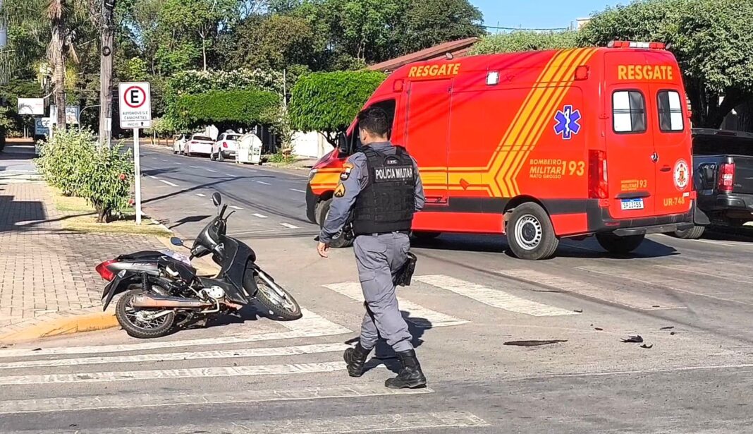 Motociclista é socorrida com suspeita de fratura após colisão com carro em Sinop