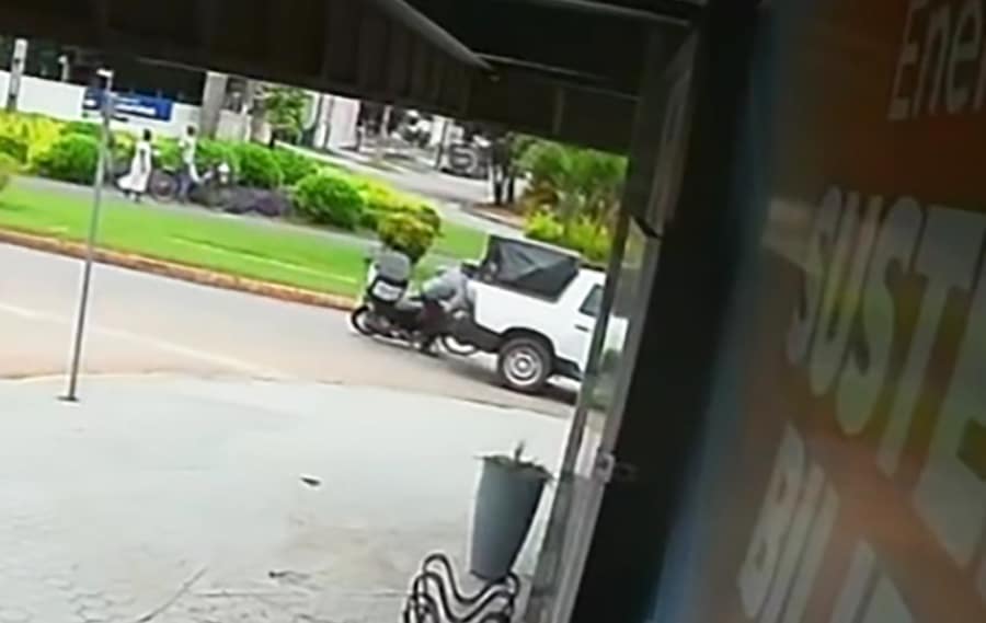 imagens de câmeras de segurança mostram que ambos seguiam pelo mesmo sentido quando houve o choque. O motociclista teria tentado realizar uma ultrapassagem quando acabou atingindo a parte de trás do automóvel. A Crypton e o Oroch tiveram danos parciais.