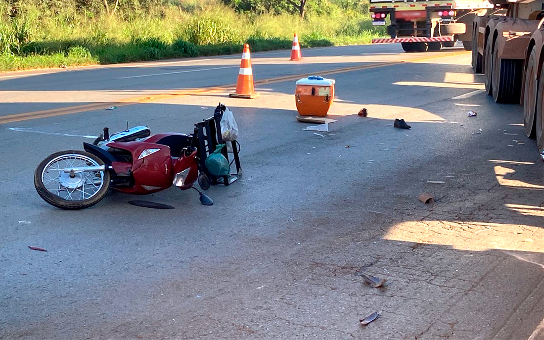 O acidente envolvendo a carreta DAF XF 105 e a Honda Biz, foi registrado, há pouco, no trecho da rodovia federal, no perímetro urbano de Sorriso. As equipes do Corpo de Bombeiros e da concessionária Rota do Oeste foram acionadas e constataram o óbito Carlos Roberto Rodrigues, 59 anos.