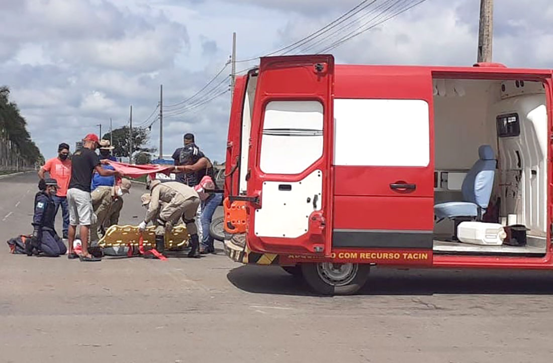 O condutor da moto foi socorrido pelo Corpo de Bombeiros com suspeita de Trauma cranioencefálico (TCE) e encaminhado ao Hospital São Lucas.