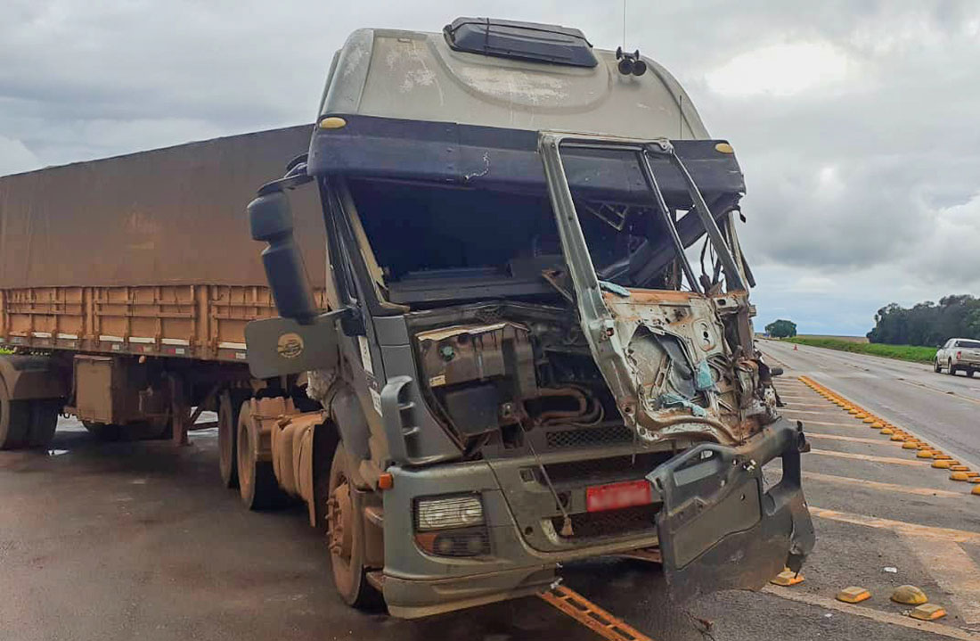 A cabine da Iveco ficou completamente destruída. A Mercedes, que pertence a uma empresa de transportes, teve danificação na lateral e no tanque de combustível.